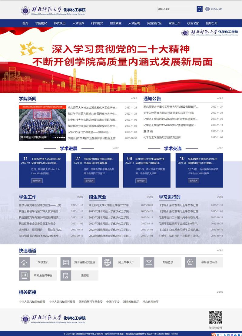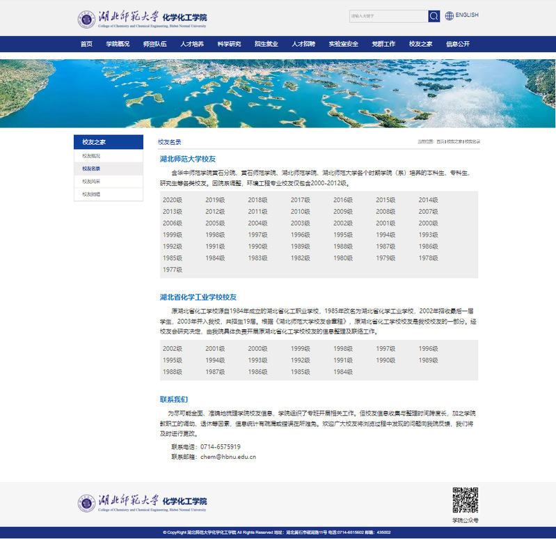临近校庆,各地各届校友从网络、公众号关注学院近况是正常之举。学院早在年初就开始谋划网站、公众号改版。2月14日,学院党委会研究确定改版方案。经过多轮修改和广泛征求意见,改版后的新网站于10月12日正式上线运行。新网站页面设计清新、大气、简约,充满时代气息,更具现代感,各类板块架构简洁清晰,一推出浏览量就大为增加。为加强学院与校友的互动,网站新设立“校友之家”专栏,设校友概况、校友名录、校友风采、校友捐赠子栏目,搭建了历届校友的云平台。与此同时,将学院微信公众号更名为“HBNU化学化工”,在学院简介中设立众多介绍类栏目,在学院动态中分类设立新闻栏目,让更多校友可直接通过公众号关注学院发展的每一个动态。