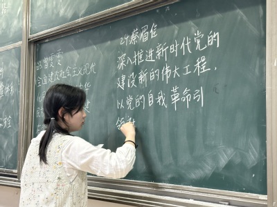 本次比赛分为硬笔、毛笔、粉笔三种形式,选手在毛笔、粉笔、钢笔书写时的参赛材料由团总支宣传部提供,手抄报则采用线上投票方式进行评比。选手应用楷书或行书的形式进行书写,每一个人都胸有成竹,行云流水。比赛现场,同学们个个凝神运气,全神贯注,在规定时间内纷纷交出自己满意的作品。笔墨飞舞之间,一幅幅笔力雄健,字迹流畅的书法作品呈现到了大家眼前,充分展现了每一位选手的个人风采。比赛结束后,刘晓丫从书写格式、大小、笔画顺序等方面对选手的作品进行了全方面点评。