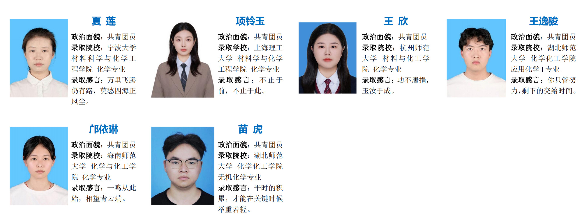 编者按:执笔耕耘梦想,持卷浅吟年华;踏上“研”途,便只顾风雨兼程。这一趟有山重水复,也终见柳暗花明;虽漫长而艰辛,但终有回报之日。我院2024届284名本科毕业生中122人被国内外高校(研究所)录取,升学率达42.96%,创学院考研录取率历史新高。本期推送应用化学、化学工程与工艺专业考研光荣榜,他们从选择考研的那一刻开始,以山河为伴,日月为引,一直以来的努力,迎来了最好的结果。