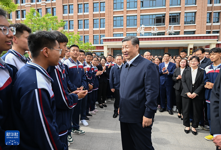 6月18日至19日,中共中央总书记、国家主席、中央军委主席习近平在青海考察。这是18日下午,习近平在果洛西宁民族中学考察时,同师生们亲切交流。新华社记者 鞠鹏 摄