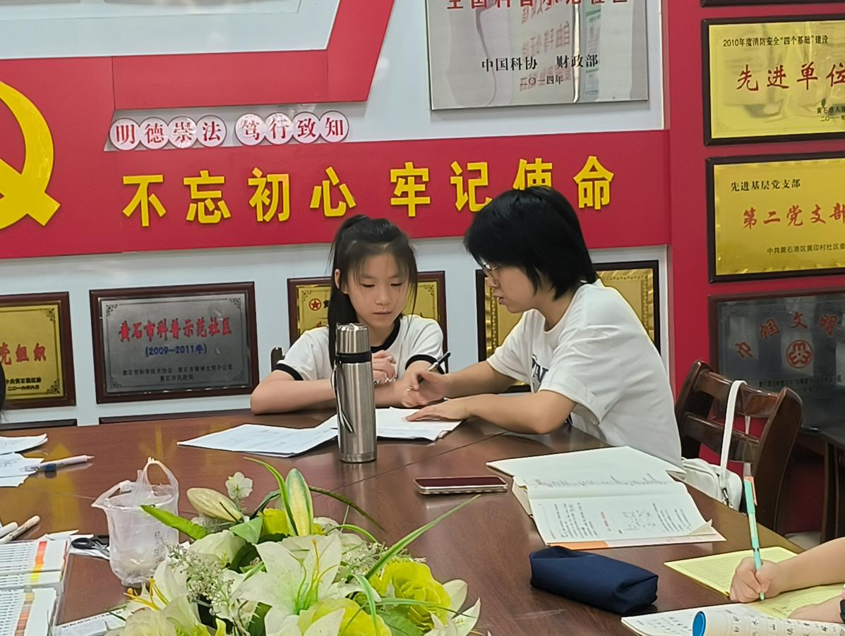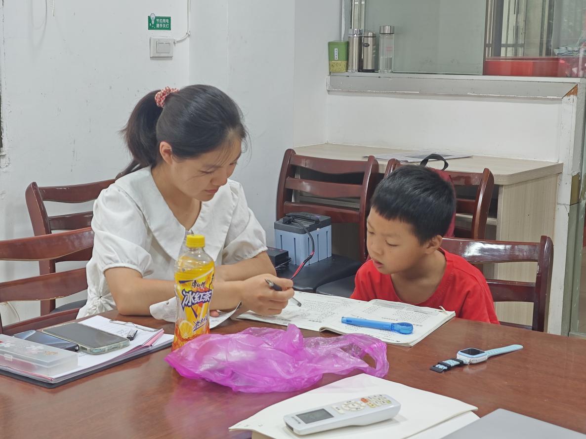 蝉鸣悄起,暑日已至。暑假是孩子们巩固知识、提升能力的重要时期。为了帮助孩子们更好地利用暑假进行学习,完成暑假作业,大学生志愿者们以一对一的形式进行辅导,团队成员们发挥自己的特长,对孩子们的语文、数学、英语等学科暑期作业进行课业辅导,耐心询问他们在学习上遇到的困难和问题,并一一进行解答。实践队员化身“小家教”,点燃孩子们的学习热情,带领孩子们查缺补漏、探索新知。学生们积极提出自己在作业上的疑问,队员们有针对性地进行指导,与其一起分析题目题型,找出题目难点,及时答疑解惑。同时,队员们还向学生们分享好的学习方法,提高学生学习的计划性和目标性,引导他们找到合适的学习方法,养成良好的学习习惯。