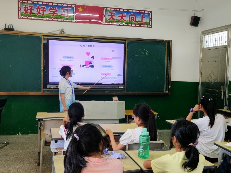 为教育引导女生正确应对青春期身体、心理变化,了解青春期健康知识,树立健康向上的良好心态,7月30日下午,我院星火筑梦小分队在阳新县官塘完全小学开展以“青春自知 花开有时”为主题的高年级女生青春健康教育专题讲座。支教队成员雷婷担任主讲人。