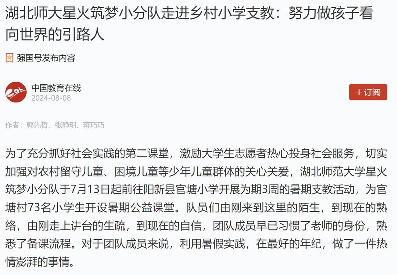 湖北师大星火筑梦小分队走进乡村小学支教:努力做孩子看向世界的引路人