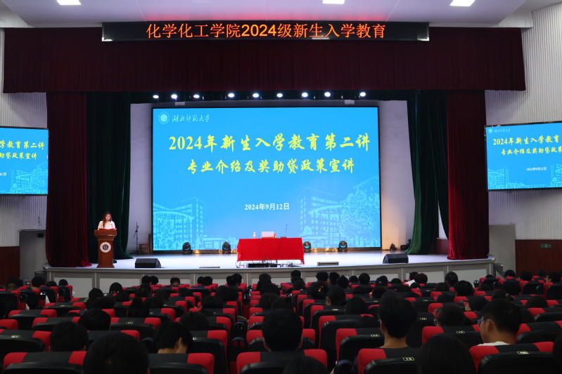 为帮助新生了解自己的专业以及未来发展方向,尽快适应大学的学习生活,合理、科学地规划未来的学习生涯,9月12日下午,我院于湖师大礼堂为化学、应用化学、化学工程与工艺三个专业新生进行专业介绍。化学专业负责人陈金阳副教授、应用化学专业负责人郑春阳副教授、化学工程与工艺专业负责人周耀副教授担任主讲人,我院学生会(学生自律委员会)主席肖丹及院团委学生副书记陈伯骏担任主持人,我院2024级全体新生参加。