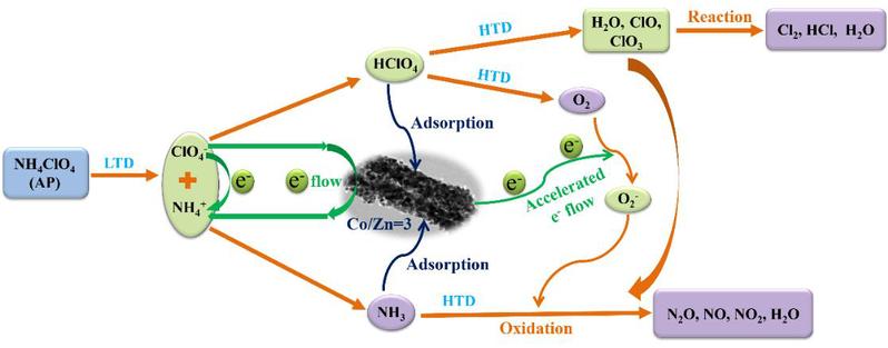 Co3O4@ZnO异质结催化高氯酸铵热分解机理图