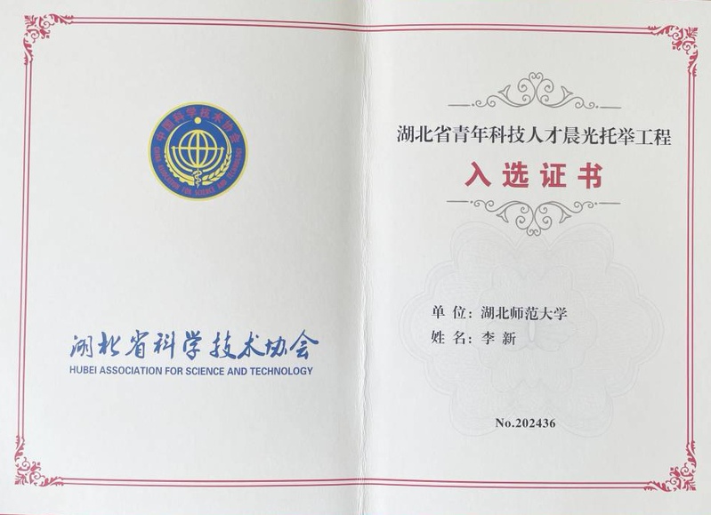日前,湖北省科学技术协会公布了《2024年湖北省青年科技人才晨光托举工程入选者名单》,70名青年科技工作者脱颖而出,我院李新副教授成功入选该项目。