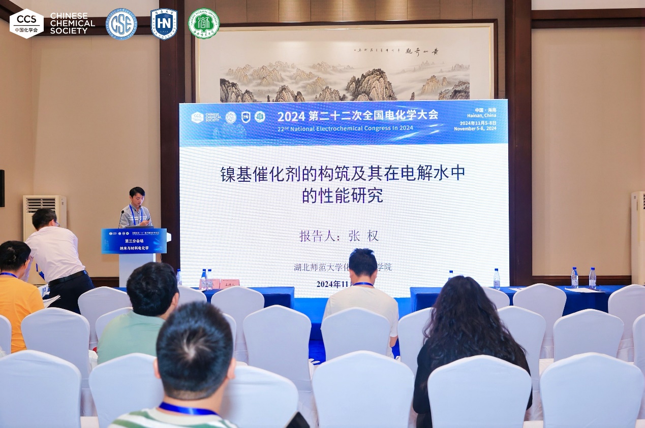 11月5-8日,由中国化学会电化学专业委员会主办、海南大学共同主办、海南大学和海南师范大学联合承办的中国化学会第二十二次全国电化学大会在海南省海口市举行。我院无机化学教研室张权博士参会并在纳米与材料电化学分会场做题为《镍基催化剂的构筑及其在电解水中的性能研究》的口头报告,报告了其通过限域效应和异质结构,以及杂原子掺杂和构建单原子金属合金等几种设计策略,精细调控镍基催化剂的组成和结构,获得性能优异电催化剂在电解水方向的相关研究工作。