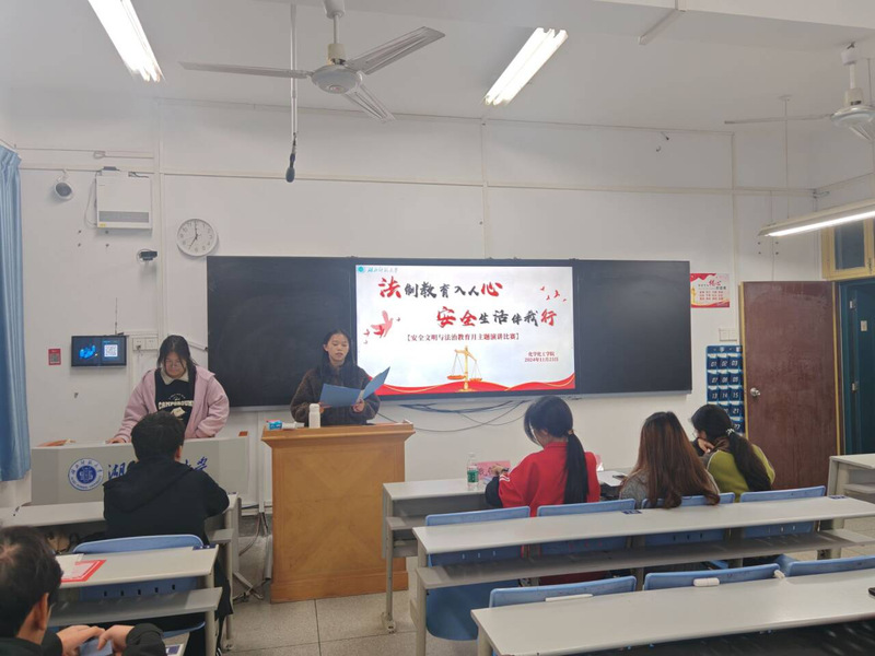 为深化同学们对安全文明与法制重要性的认识,培养其遵纪守法的自觉性,提高同学们的安全意识,我院安全教育部于11月23日晚在教育大楼1215举办了“法制教育入人心安全生活伴我行”主题演讲比赛,我院学生会(自律委员会)主席团成员肖丹、戢俊贤、王俊钧担任此次比赛评委。