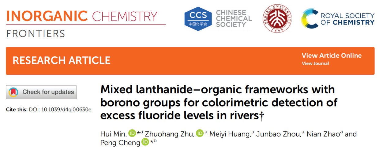 [成果9] 含硼酸基团的混合镧系金属-有机框架用于江水中过量氟离子含量的比色法检测