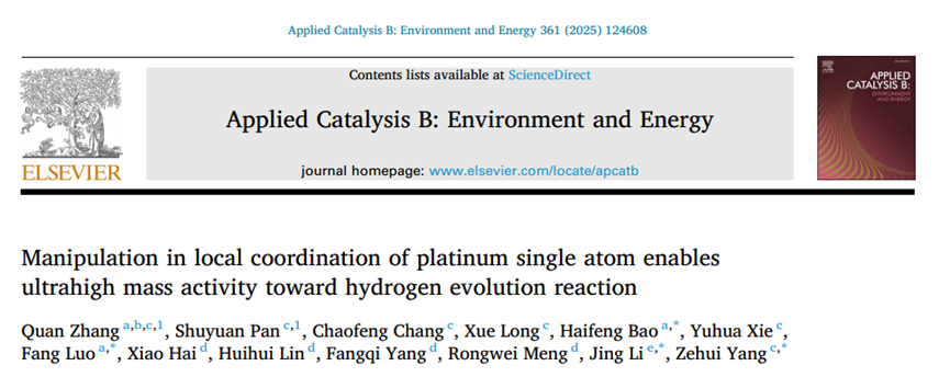 [成果30] 调控铂单原子的局部配位环境实现析氢反应的超高质量活性