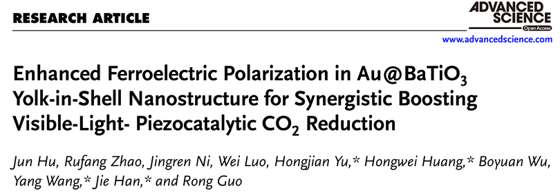 [成果29] 新型Au@BaTiO3壳中核纳米结构中增强的铁电极化用于协同增强可见光-压电光催化CO2还原