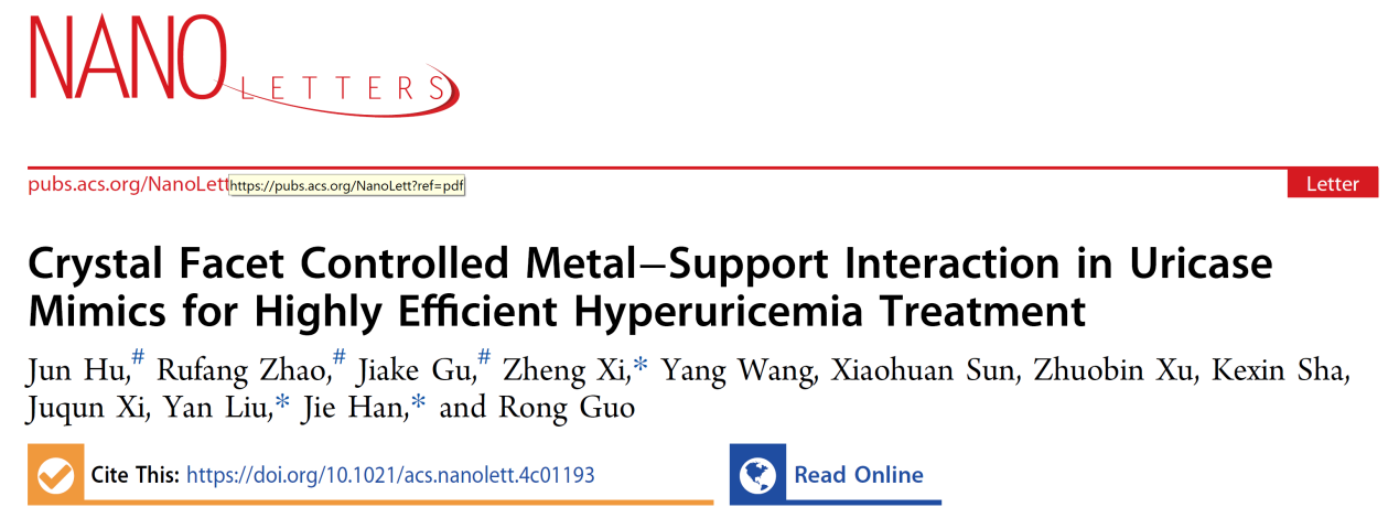 [成果26] 晶面控制金属-载体相互作用用于类尿酸酶在高尿酸血症中的治疗