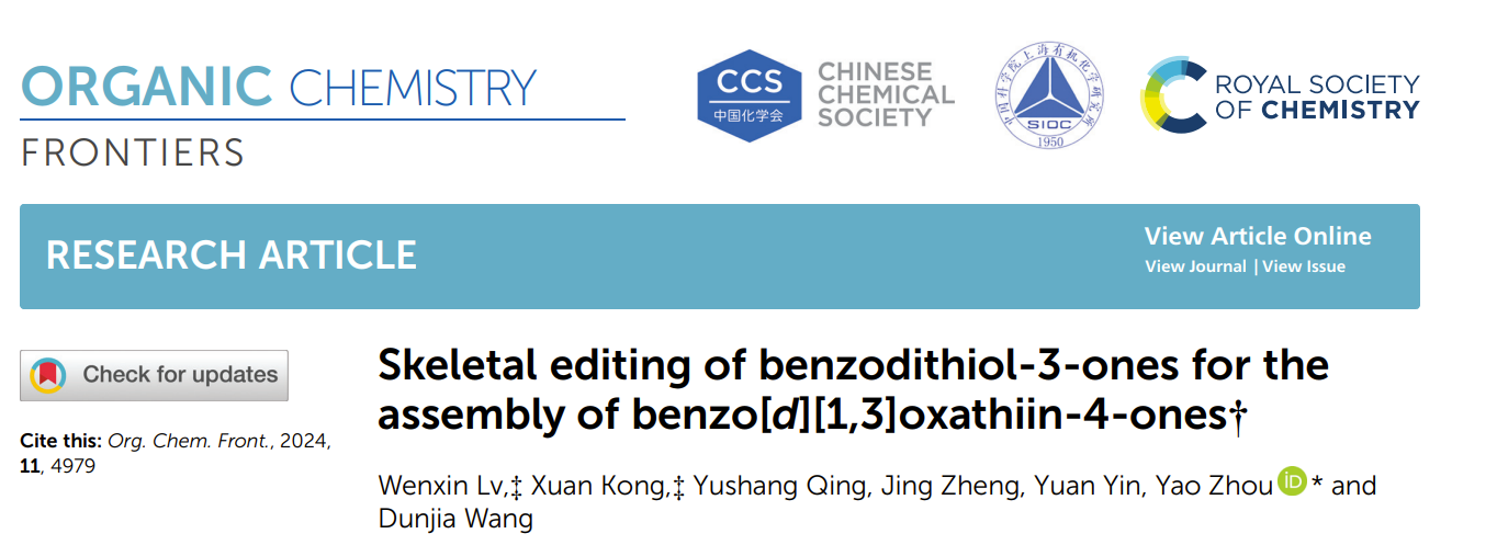 该研究成果于2024年7月发表于中科院SCI大类一区期刊Organic Chemistry Frontiers(IF:4.6),被编辑部选为封面文章。2021级硕士研究生吕文鑫和2023级硕士研究生孔暄为论文共同第一作者,周耀副教授为论文通讯作者,湖北师范大学为论文唯一通讯单位。