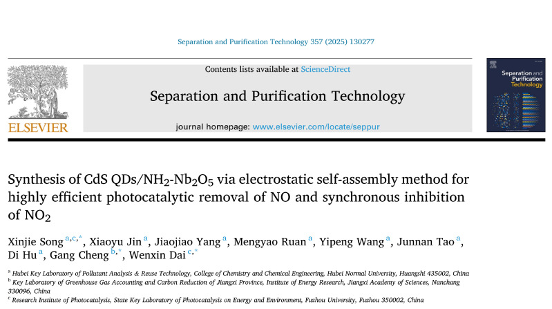 [成果22] 通过静电自组装法合成CdS QDs/NH2-Nb2O5用于高效光催化去除NO