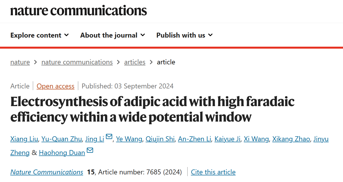 [成果28] 宽电位窗口内高法拉第效率电合成己二酸