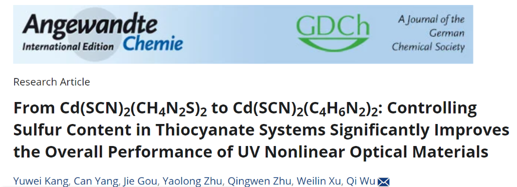 [成果33] 从 Cd(SCN)2(CH4N2S)2到 Cd(SCN)2(C4H6N2)2:控制硫氰酸盐体系中的硫含量可显著提高紫外非线性光学材料的整体性能