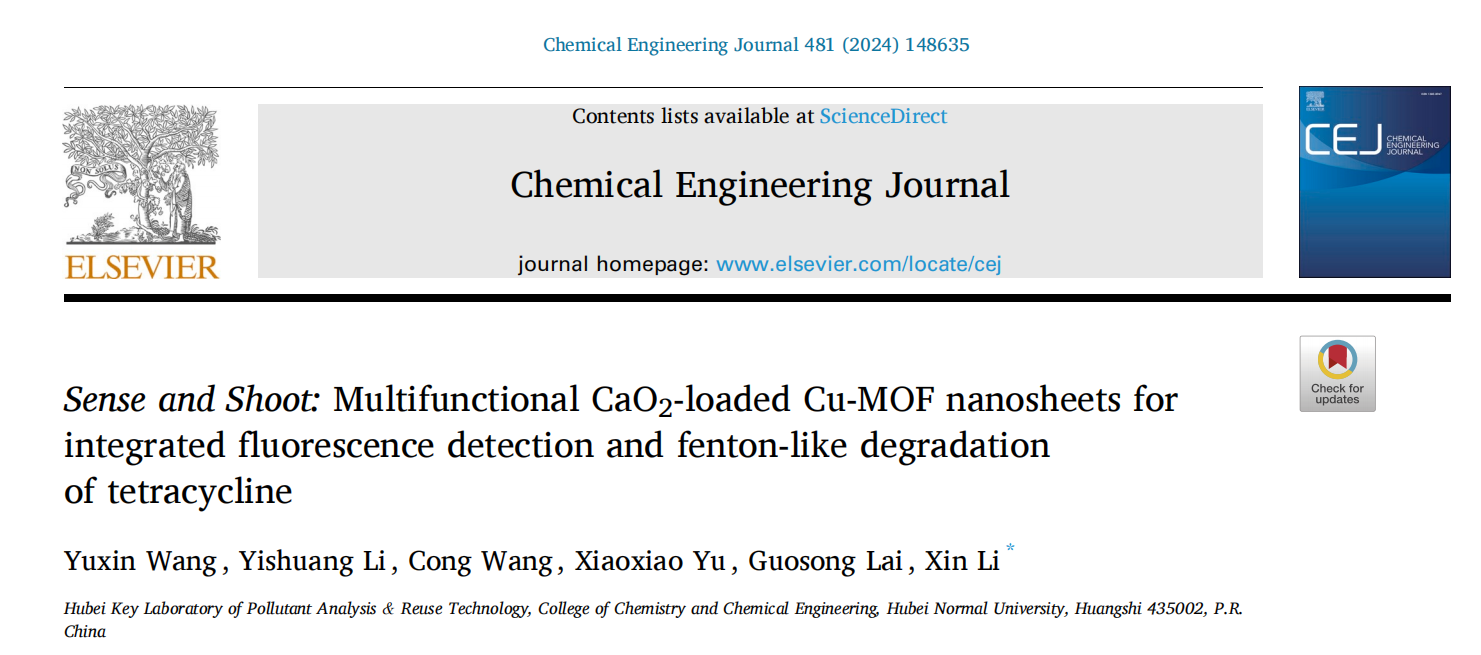 该成果于2024年1月发表于中科院SCI大类一区Chemical Engineering Journal (IF:15.1),2021级硕士研究生王宇欣为论文第一作者,李新副教授为论文通讯作者,湖北师范大学为论文唯一通讯单位。