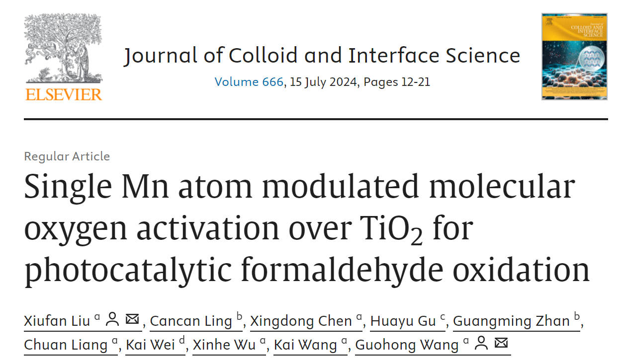 该成果于2024年4月发表于中科院SCI大类一区Journal of Colloid and Interface Science (IF=9.9),刘修凡博士为论文第一作者及通讯作者,王国宏教授为共同通讯作者,湖北师范大学为论文唯一通讯单位。