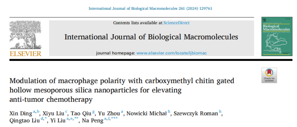 [成果24] 羧甲基甲壳素门控的中空介孔二氧化硅纳米颗粒调节巨噬细胞极化提高抗肿瘤化疗