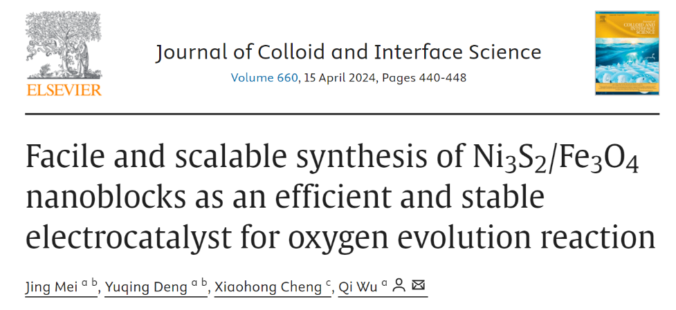 [成果34] Ni3S2/Fe3O4 纳米块的简便可扩展合成及其作为高效稳定的氧气析出反应电催化剂的应用