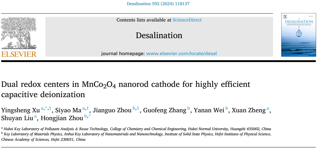 [成果18] 基于MnCo2O4纳米棒阴极双重氧化还原中心的高效电容脱盐
