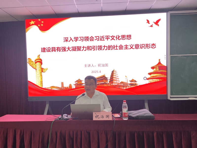 4月17日晚,我院分党校第70期入党积极分子培训班第四讲在信息大楼报告厅开讲,党委宣传部常务副部长祝治国以《深入学习习近平文化思想 建设具有强大凝聚力和引领力的社会主义意识形态》为题为全体学员授课。
