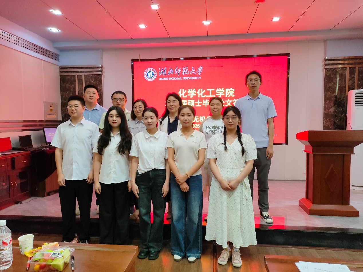 物理化学2组论文答辩于5月25日在化学大楼5楼会议室举行。湖北理工学院化学与化工学院党总支书记左小华教授担任答辩委员会主席,我院王国宏教授、王娟副教授、吴新鹤副教授、刘修凡博士4位硕士生导师担任答辩委员,2022级硕士研究生李可、王仲秋、杨玉玉、陈郭强、周琪5名学生参加答辩。