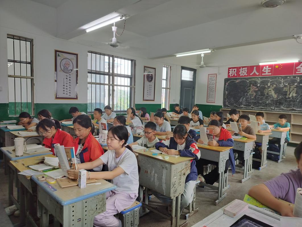 7月7日清晨,排市镇初级中学的校园里响起了清脆的广播声,湖北师范大学星火筑梦实践队的队员们已经忙碌起来。他们带着两天前与学生磨合后精心调整的教学方案,正式开启了七彩假期活动的第一周教学。从晨光熹微时的备课,到夜幕降临下晚自习后目送学生们带着满足的笑容离开,队员们的身影穿梭在校园的各个角落,全身心投入到课堂教学、实践活动组织和安全引导等各项工作中。