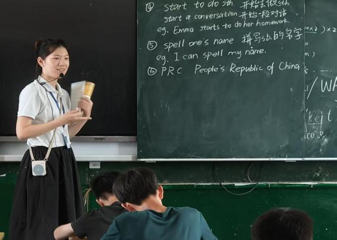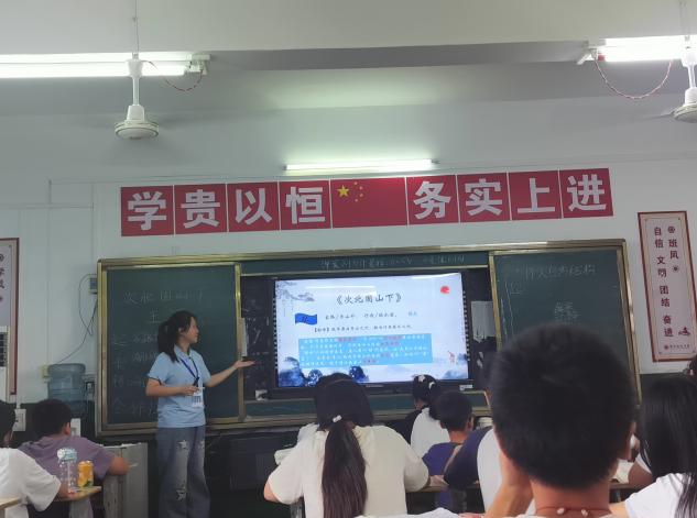 文化课教学中,队员们精准发力,夯实学生知识基础。语文课上,经典文段赏析与生活片段写作结合,让读写能力在实践中提升;数学课上,基础巩固与新课预习同步推进,小组解题竞答点燃学习热情;英语课上,“单词接龙”“情景对话” 等趣味活动,让单词句型在互动中扎根。物理课则聚焦八年级第一章《机械运动》内容开展新课预学,提升学生学习物理的信心和兴趣。