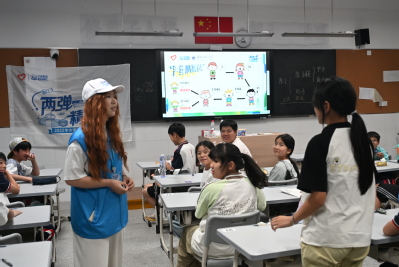 7月12日,宣讲团成员段晨蔚、杨银涛走进浠水县兰溪方铺小学,为一至六年级学生带来一堂生动的思政课与科普课。段晨蔚现场以古筝演奏《东方红》引入,随后共同观看卫星发射的珍贵影像,详细讲述中国第一颗原子弹的研制历程,从科研团队组建到戈壁滩上的艰苦奋斗,结合“两弹一星”功勋奖章获得者王淦昌的事迹,生动展现了科研工作者和参试部队“干惊天动地事,做隐姓埋名人”的崇高精神。杨银涛从核技术的基础原理讲起,用“太阳为什么能一直发光发热”“原子弹为什么有那么大威力”等问题开篇,重点讲解了核技术在生活中的“隐形身影”,并结合孩子们熟悉的场景举例,让抽象的技术变得可感可知。面对“核技术会不会有危险”的疑问,他用“就像用电一样,只要规范使用就很安全”的比喻耐心解答。