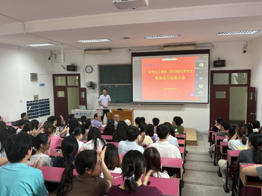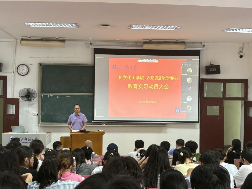 为扎实推进师范生教育实践工作,切实强化育人实效,9月4日,学院在教育大楼阶梯教室举行2022级化学专业教育实习动员大会。院党委副书记汪崇文、副院长周兴旺出席并作动员讲话。