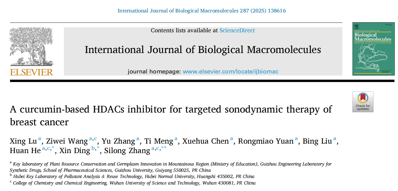 该成果于2024年12月发表于中科院SCI大类一区International Journal of Biological Macromolecules(IF:8.5),丁鑫博士、贵州大学张思龙教授及何欢教授为论文共同通讯作者,湖北师范大学为论文第二通讯单位。
