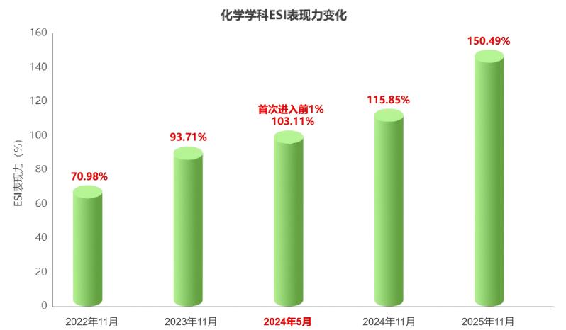 2. 学科实力持续增强。化学学科ESI表现力从去年11月的115.85%增长到今年同期的150.49%。全年利用设备更新、改革发展补助、捐赠及配比等专项购置设备53台套共2106.35万元。